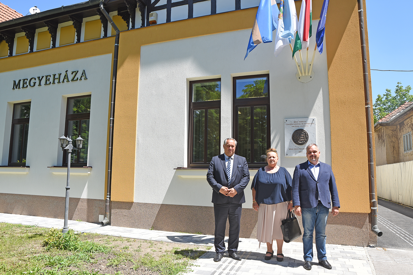 Fotó: Lakatos Gyula – Zalai Mihály Békés Megye Közgyűlésének elnöke mellett Patkás Julianna a Cselekvő Romák Békés megyei referense, valamit Horváth Szilveszter Dél-Alföldi regiónális igazgató látható.