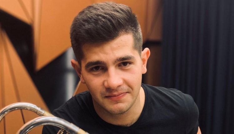 Csák István, 21 éves, Egyházasharasztiban tanít, mélyrézfúvós hangszereket (harsonát, baritonkürtöt és tubát). 26 gyerekkel foglalkozik.