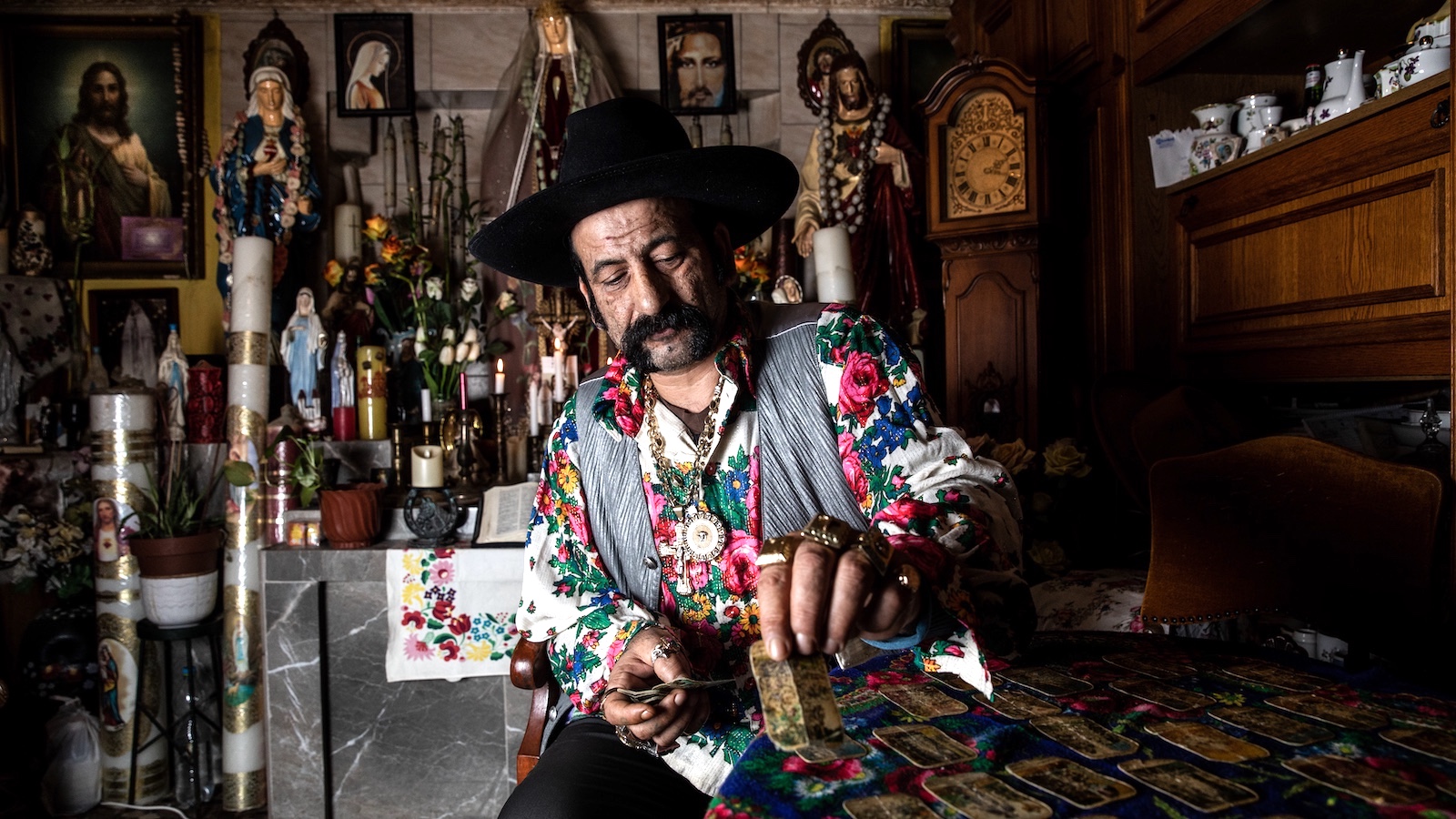 Először azt hittem, rossz vonatra szálltam fel. A lőkösházi állomáson vártam volna hasonló fogadtatást. Széles karimájú fekete kalapot viselő bajszos férfi vár biciklijére támaszkodva. Mintha a nagykönyvben körülírt gábor-cigányt látnék – ők azok, akikre egyből figyelmes lesz az ember, ha átlépi a román határt. De ez nem Lőkösháza, hanem Soltvadkert. Bács-Kiskun kellős közepe. Nem meglepő hát, hogy Sztojka Zoltánnak „Kalapos” a ragadványneve. Viszont alighanem a kalap a legkevésbé szokatlan rajta. Ujjait vastagon borítják a pecsétgyűrűk, nyakában vagy fél kiló smukk csörög. Fekete-fehér kopogós cipője messziről visszhangzik a havas betonjárdán. Nincs róla reprezentatív felmérés, de az olajszőkítés, a tablettás borok és a körforgalomnál lévő Szent Korona Cukrászda mellett valószínűleg Kalapos Zoli is Vadkert nevezetessége. Még a rendőr is köszön neki. Hogy barátságból vagy elővigyázatosságból, nem tudni. Emberünk ugyanis jós. Az ország egyik legismertebbje.