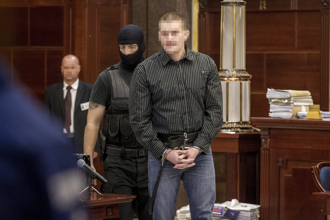 (Borítókép: Csontos István negyedrendű vádlottat (középen) kísérik be a romák sérelmére elkövetett sorozatgyilkosságok másodfokú büntetőperére a Fővárosi Ítélőtáblán 2015. április 15-én, az első tárgyalási napon. Fotó: Szigetváry Zsolt / MTI)