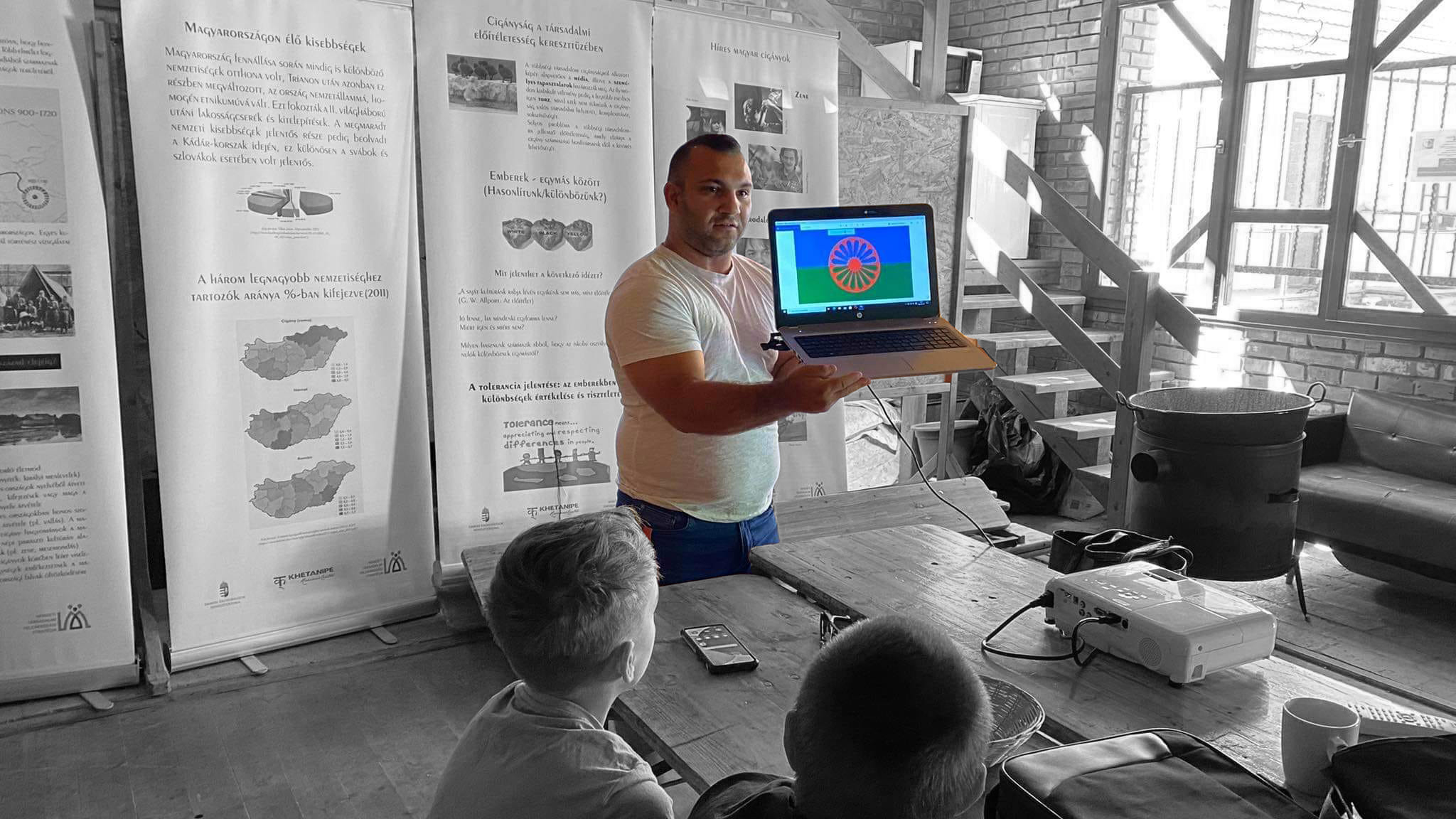 romológus és jómagam szociális és ifjúságsegítő vagyok. Végzettségünk, tapasztalataink és saját cigány/roma identitásunk által tudjuk átadni a történelmet, cigány/roma nyelveket, a cigány kultúrát a foglalkozásokon.