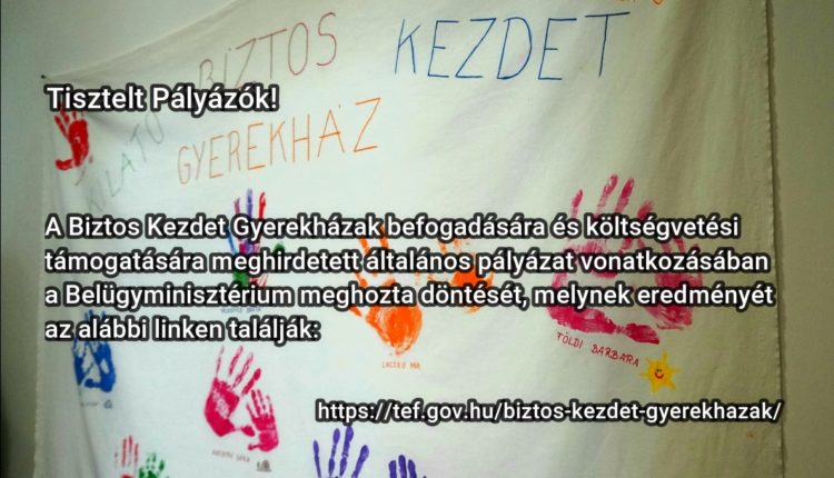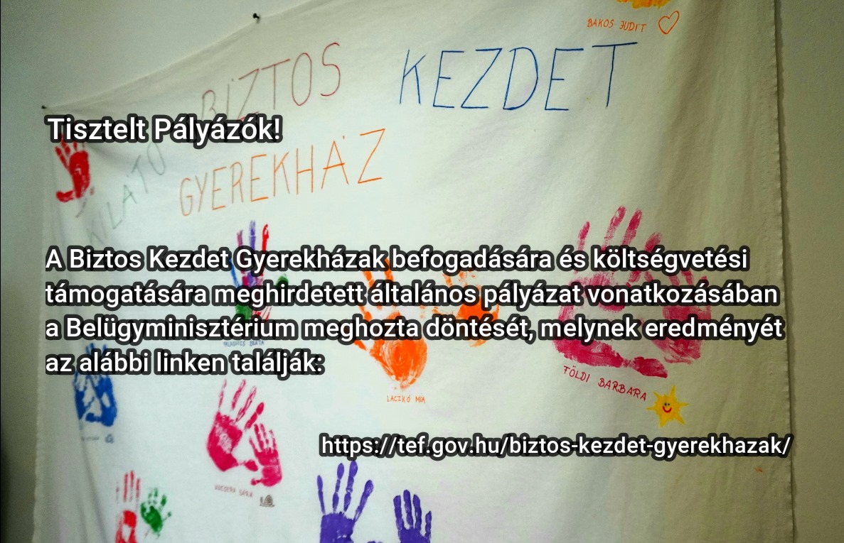 A Biztos Kezdet Gyerekház befogadására és költségvetési támogatására meghirdetett általános pályázat vonatkozásában a Belügyminisztérium meghozta döntését, melynek eredményét a mellékelt táblázat tartalmazza.