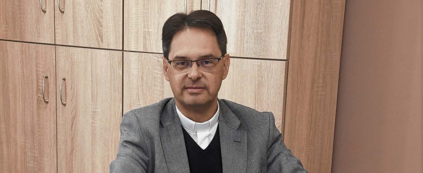 – Szabolcs-Szatmár-Bereg megyéből származom, Mándokon születtem, ami ma már kisváros. Nyíregyházán végeztem a teológiát, a pasztorálpszichológiát Debrecenben, doktori iskolába Kolozsvárra jártam, amit be is fejeztem, de a doktori fokozat megszerzése még folyamatban van. Több mint tíz éve foglalkozom krízislélektannal, ennek kapcsán van egy sorozatom az Új Misszió folyóiratban, melynek címe Kézen fogva Isten országa felé. Sok helyre hívnak elő­adást tartani, főleg a házasság hetén, és sok ember választ gyóntatójává vagy lelki vezetőjévé. Nyíregyházán óraadó vagyok a hittudományi főiskolán, és képzést tartok az üldözött keresztények megsegítéséért, valamint a Hungary Helps Program önkénteseinek, akik külföldi szolgálatra indulnak. Tehát a munkám sokrétű, a szakkollégium irányítása mellett sok más feladat is megtalál. Azonban számomra ez természetes, hiszen tevékeny családból származom. Miskolcon 15 éve élek a feleségemmel, két gyermekünk van, akik 17 és 15 évesek. Mindketten a Fényi Gyula Jezsuita Gimnáziumba járnak, a feleségem angoltanár, a Fáy András Görögkatolikus Technikum és Szakgimnázium pedagógusa – vázolta röviden életútját Makkai László.