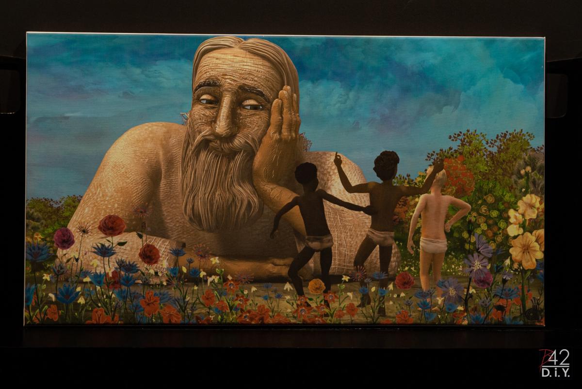 A teremben tompul a fény, a vásznon színpompás világ jelenik meg, a fülekbe pezsdítő dallam kúszik. Indigókék éjszakai égbolt, ragyogó tollú madarak raja elevenedik meg. Újabb kockákon a Teremtő, aki embert próbál agyagból gyúrni, de az esendő, így hát nagyon is hozzánk hasonló természete: a türelmetlensége, a feledékenysége miatt háromszor kell próbálkoznia, mire elégedett az eredménnyel. Majd együtt szomorkodunk a legénnyel, akit kígyó mardos, de akin nagy bajában egyik családtagja sem akar segíteni.